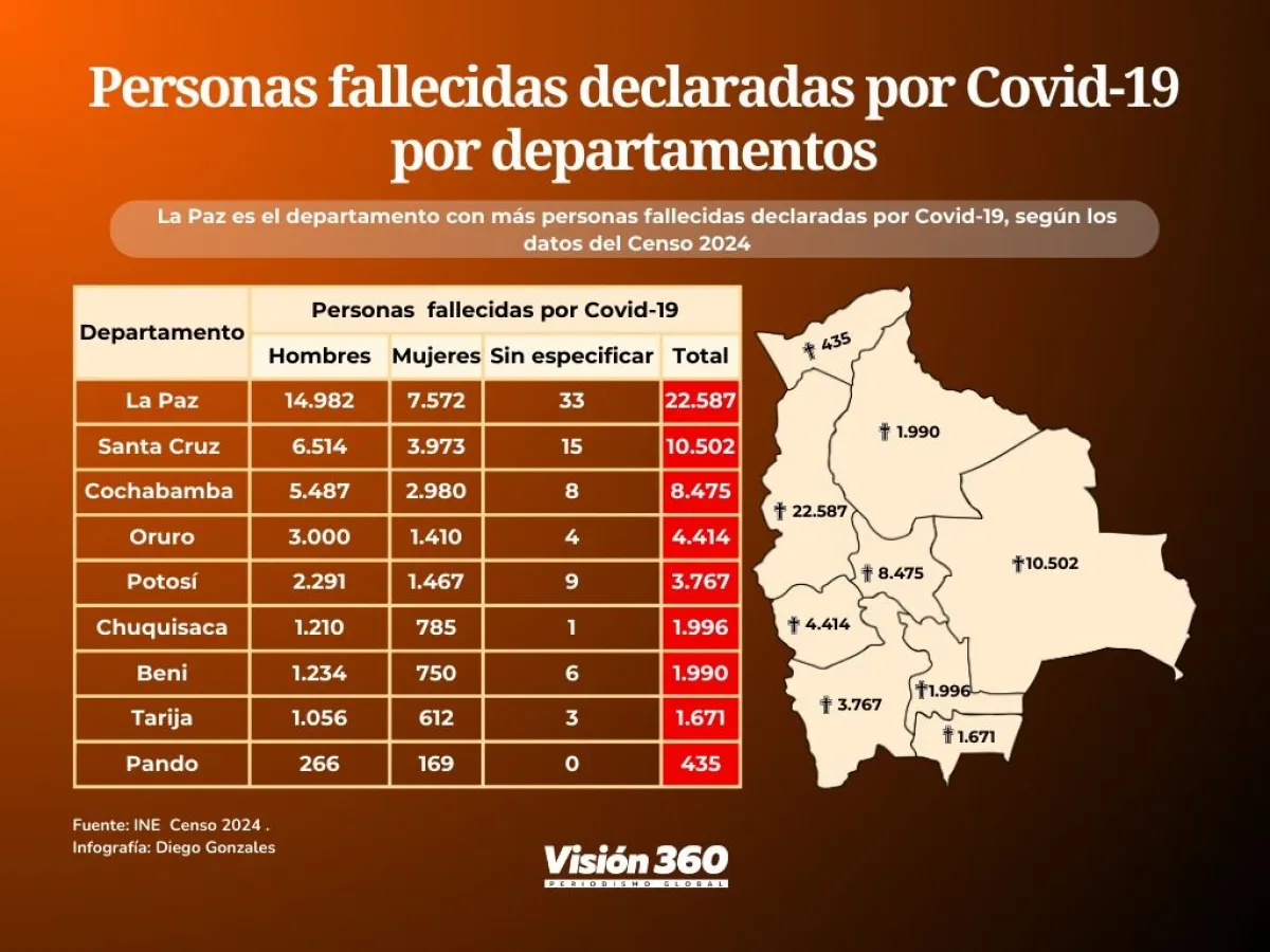 55.837 personas fallecieron por covid-19 en Bolivia, la mayoría en La Paz, según el censo 2024