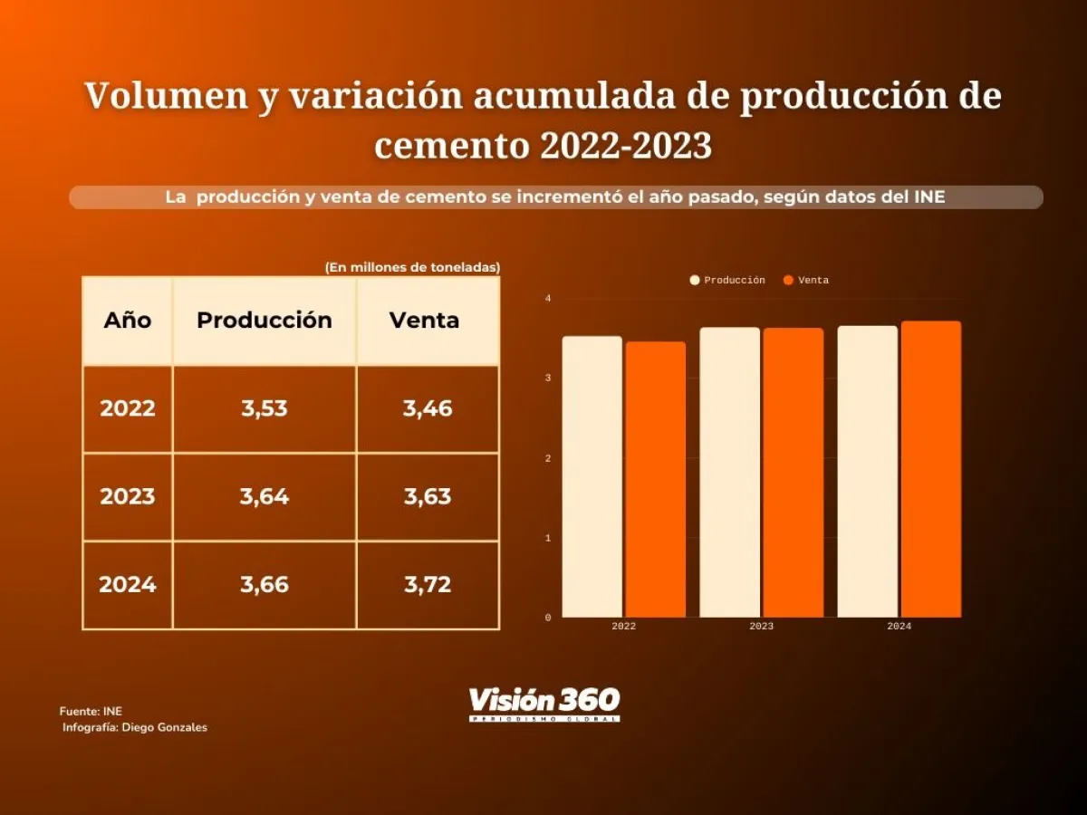 A junio de 2025, la producción de cemento alcanzó 1,92 millones de toneladas métricas (TM), inferior en 1,3% en comparación al mismo período 2024, que llegó a 1,95 millones de TM, según reporta el Instituto Nacional de Estadística (INE).