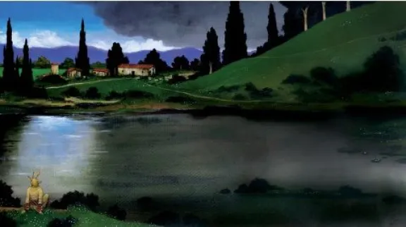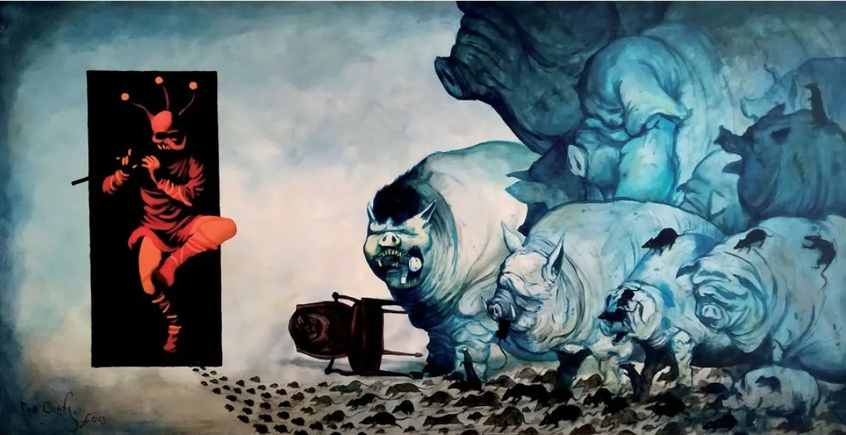 El flautista de Hamelín llega al palacio. Acrílico sobre lienzo. 100 x 50 cm