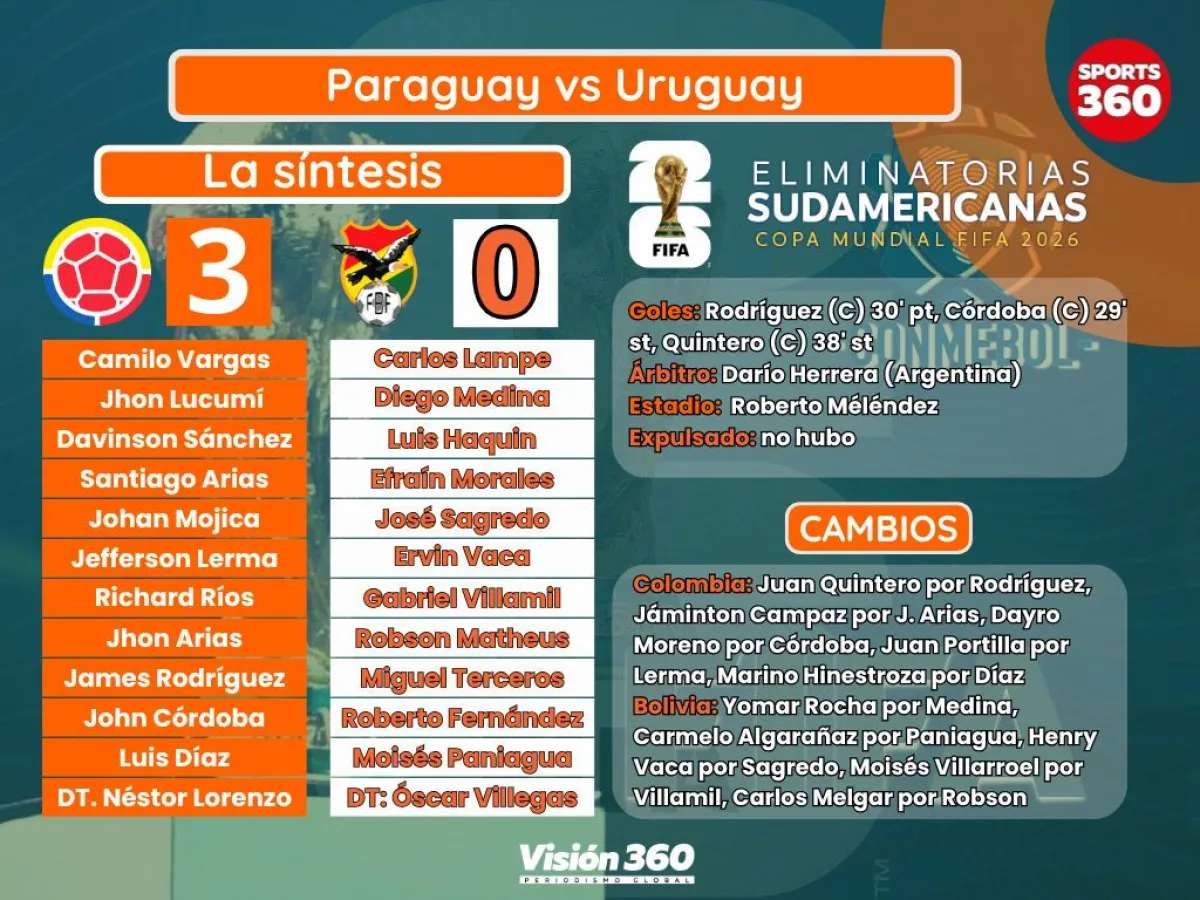 Colombia no tuvo problemas para vencer a Bolivia por 3-0 y conseguir su clasificación al Mundial 2026. Con poco y regulando los tiempos, el local mostró la jerarquía de sus individualidades ante un elenco boliviano que se aferra ahora a ganarle a Brasil y que Venezuela no sume de a tres en la última fecha para aspirar al repechaje.
