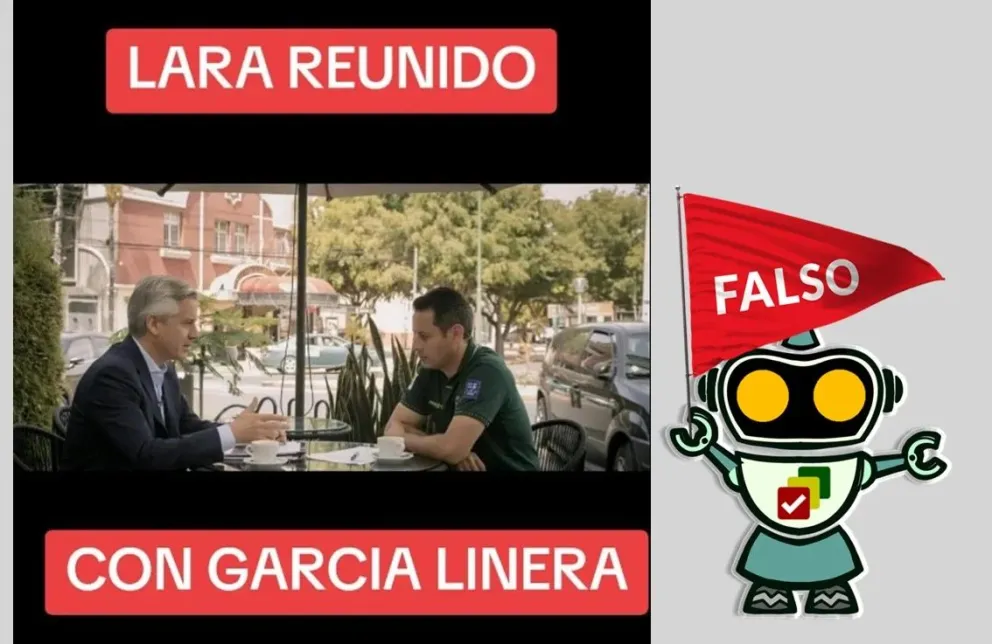 Por redes sociales circula una imagen donde se ve al exvicepresidente Álvaro García Linera reunido en una cafetería con el actual candidato a la vicepresidencia Edmand Lara del Partido Demócrata Cristiano (PDC). No obstante, este encuentro no es real, el contenido fue manipulado digitalmente, existen rasgos que lo delatan.