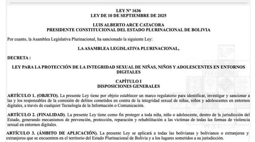 “Hoy damos un importante paso para salvaguardar la seguridad de nuestra niñez y adolescencia: promulgamos la Ley para la Protección de la Integridad Sexual de Niñas, Niños y Adolescentes en Entornos Digitales”, informó Arce en una publicación que realizó en su cuenta de Facebook.