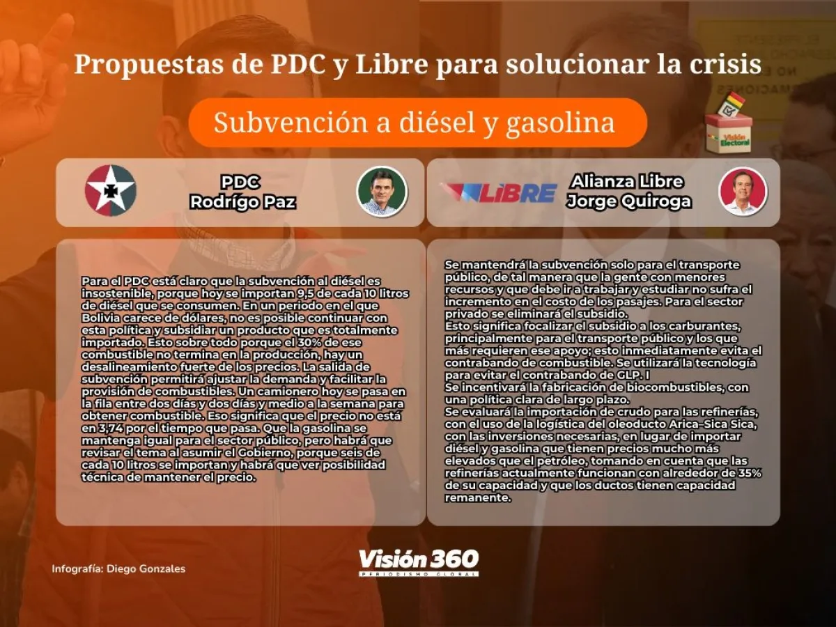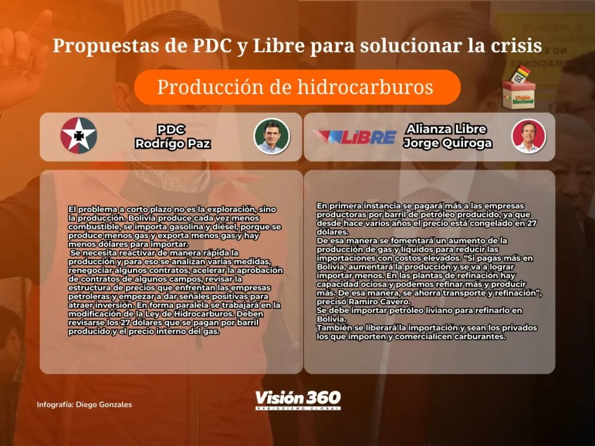 Coinciden en eliminar la subvención a carburantes y en hacer cambios en hidrocarburos. Para el PDC, se necesitan $us 3.900 millones; para Libre, $us 12 mil millones.