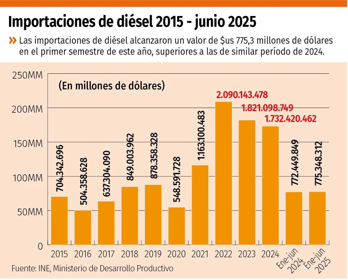 Espinoza también resaltó que la subvención al diésel es insostenible, porque hoy se importan 9,5 de cada 10 litros que se consumen de este combustible. En un periodo en el que Bolivia carece de dólares, no es posible continuar con esta política y subsidiar un producto que es totalmente importado. En el caso de la gasolina, en principio, el subsidio se mantendrá, pero esto aún se encuentra sujeto a evaluación.