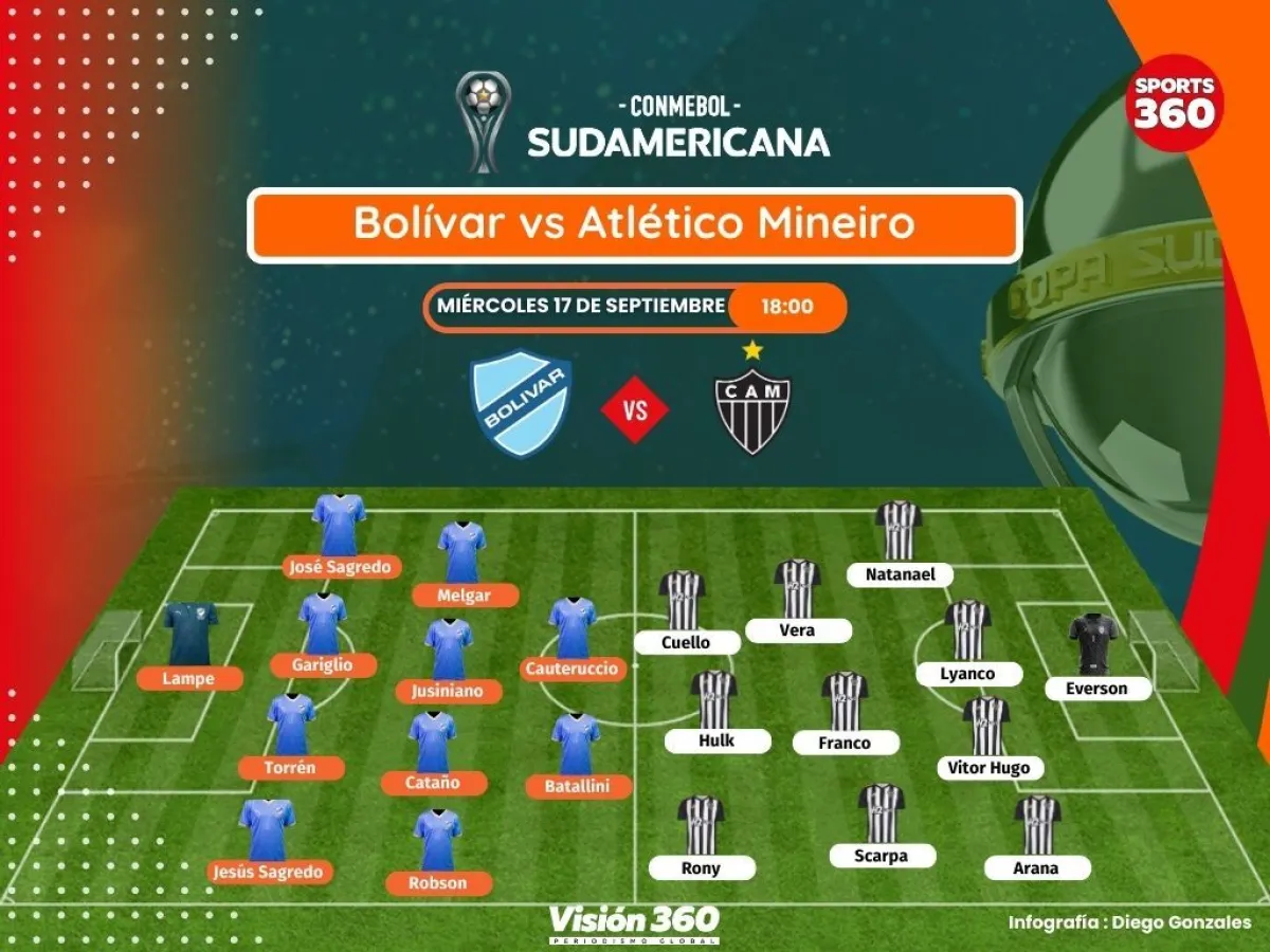 Bolívar parte como gran favorito en el encuentro de ida que sostendrá este miércoles frente al Atlético Mineiro por los cuartos de final de la Copa Sudamericana. El juego arranca a las 18:00 en el estadio Hernando Siles en medio de una gran expectativa de la parcialidad celeste.