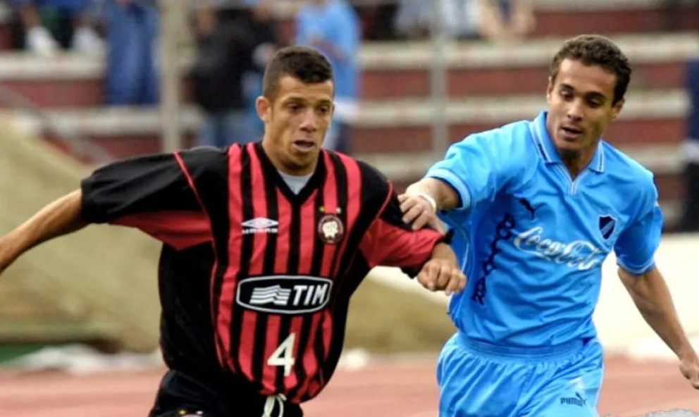Rubén Tufiño (der.), de Bolívar, en el partido con Atlético Paranaense en 2002. Foto: Redes Sociales.