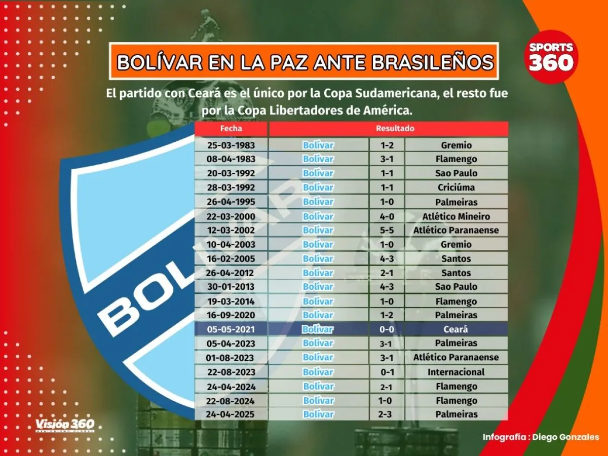 Bolívar tiene el 67 por ciento de los puntos ganados como local ante clubes brasileños