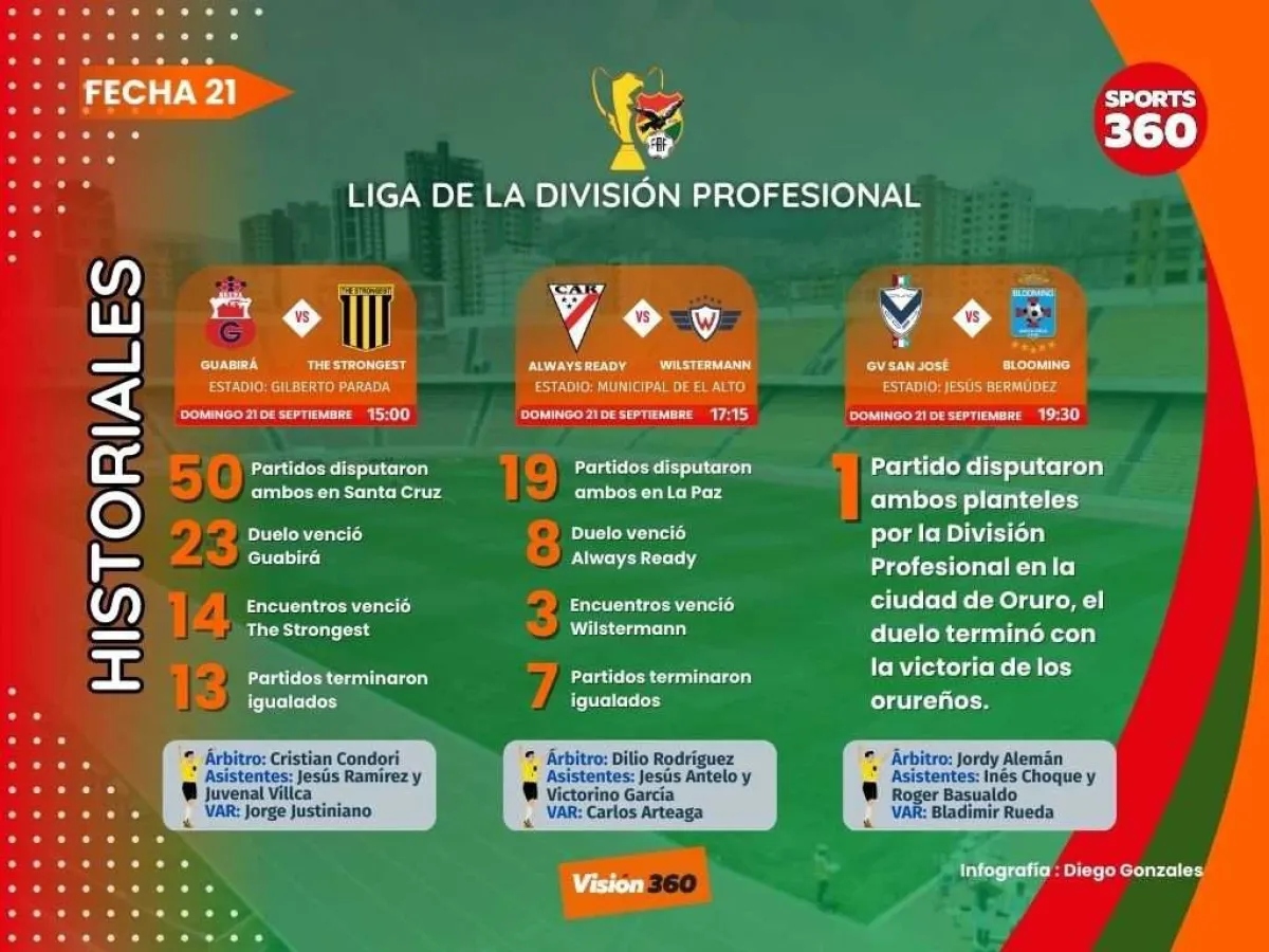 Always Ready, líder de la Liga de la División Profesional, saldrá a defender su primer lugar este domingo frente a Wilstermann en el estadio Municipal de El Alto; mientras que The Strongest, que lo escolta en la tabla, tendrá una visita complicada a Guabirá en Montero.