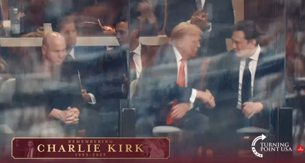 Trump, y el empresario Elon Musk se reencontraron públicamente este domingo en el funeral de Charlie Kirk. Durante la transmisión del evento, que se celebra en el State Farm Stadium de Arizona ante más de 70.000 seguidores de Kirk, las cámaras captaron el momento en que el dueño de Tesla y el mandatario dejaron a un lado sus diferencias para conversar y posteriormente estrecharse la mano.