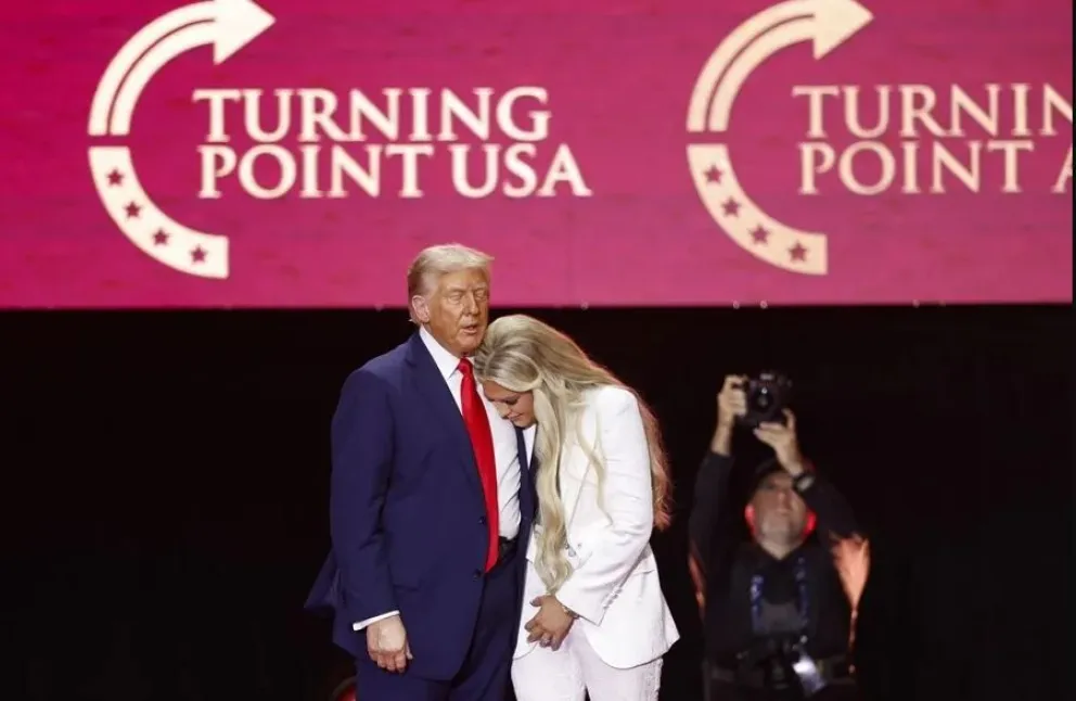 Antes del presidente, Erika Kirk, la viuda del activista ultraconservador asesinado el 10 de septiembre por el impacto de una bala mientras ofrecía una charla en la Universidad Utah Valley, subió al escenario vestida de blanco para dedicar unas palabras a su esposo.
