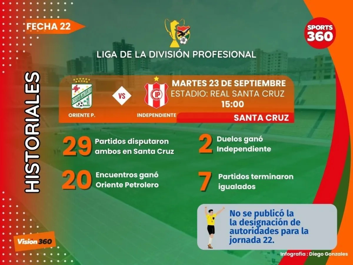 La fecha 22 de la Liga de la División Profesional, solo 24 horas después de la finalización de la jornada 21, se pone en marcha este martes con el choque entre Oriente Petrolero e Independiente de Sucre.