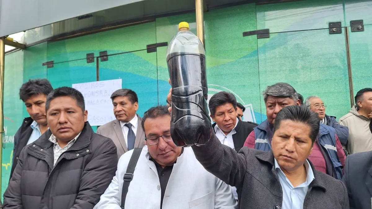 Con muestras recolectadas en botellas, los movilizados mostraron el tono oscuro y con el sedimento acumulado en el fondo de los envases, y sostuvieron que el combustible que se está cargando a las movilidades está generando, presuntamente, daños en los motores. “No vamos a permitir que se insulte la inteligencia del sector transporte, para las autoridades de la ANH, supuestamente la gasolina es de calidad. ¿Esto es calidad?”, cuestionó Limber Tancara, secretario ejecutivo del Transporte Libre de La Paz.