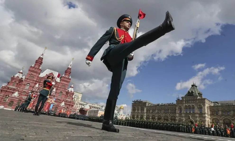 Soldados rusos con el uniforme de la Segunda Guerra mundial, en la Plaza Roja de Moscú, en una imagen de archivo. Foto: EFE