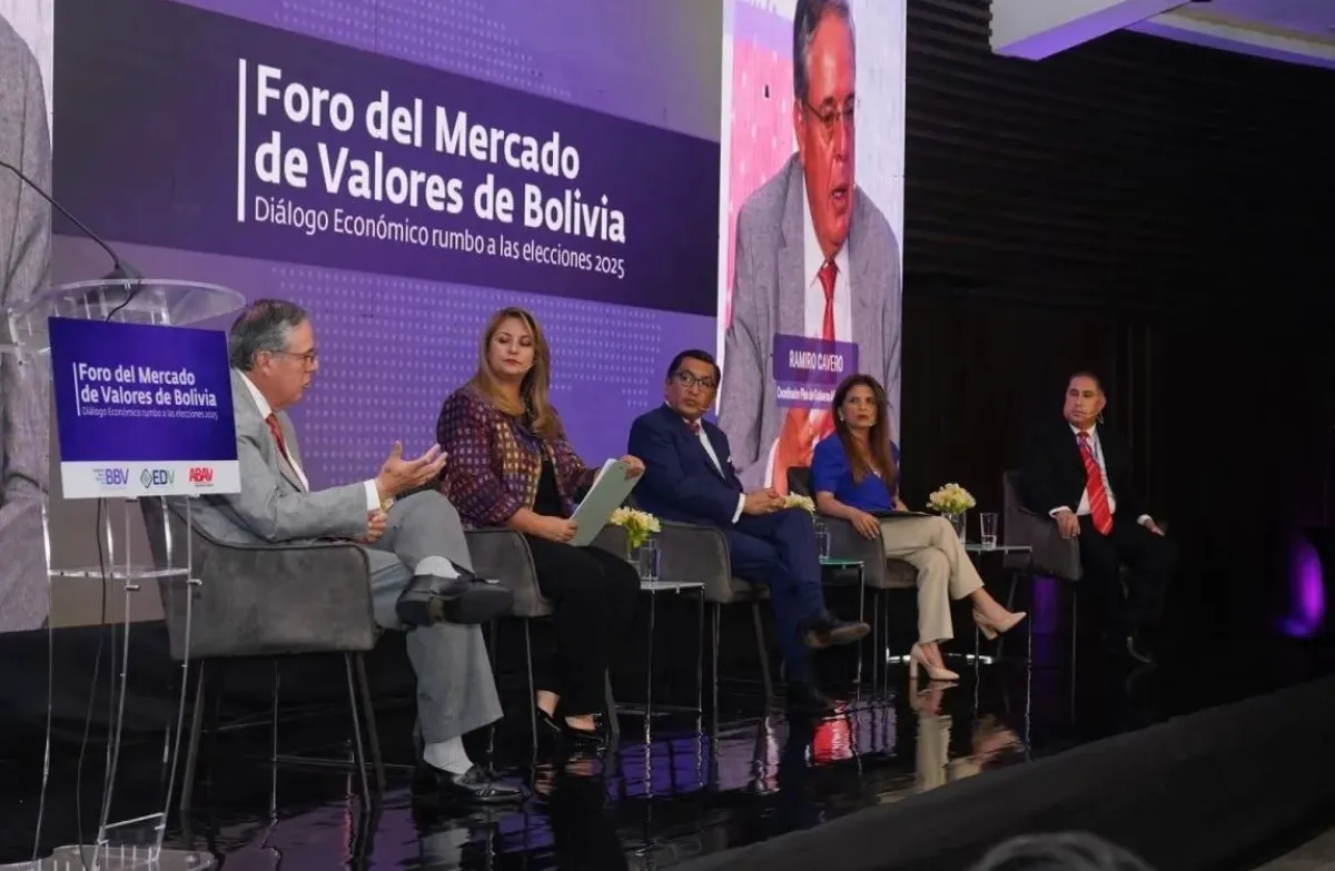 Ramiro Cavero, coordinador del plan de gobierno de la alianza Libre, y José Gabriel Espinoza, encargado del equipo económico del PDC (Partido Demócrata Cristiano), destacaron el rol estratégico que tiene la Bolsa de Valores en la economía y expusieron sus diagnósticos y propuestas en el  “Foro del Mercado de Valores de Bolivia: Diálogo económico rumbo a las elecciones 2025”,  organizado por La Bolsa Boliviana de Valores (BBV), la Entidad de Depósito de Valores (EDV) y la Asociación Boliviana de Agentes en Valores (ABAV).