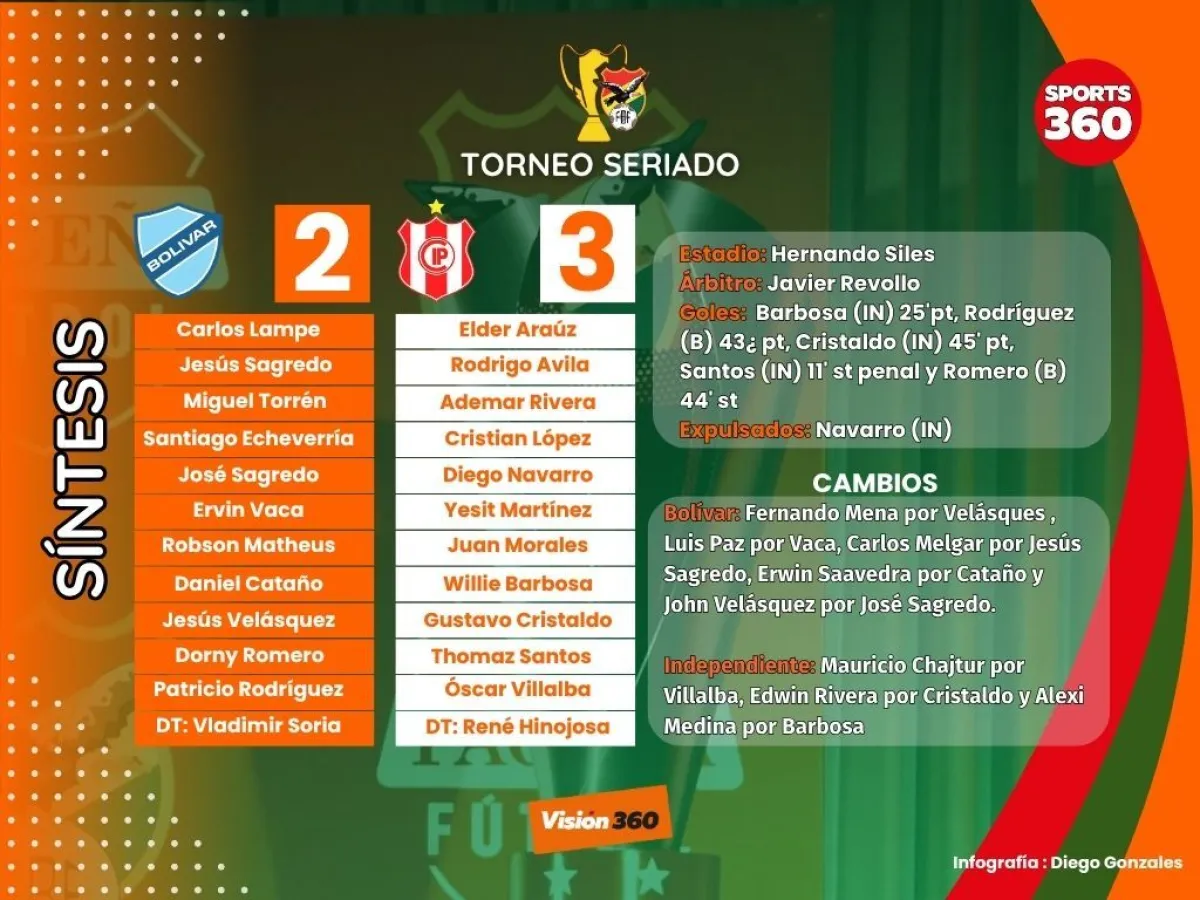 Un desorientado Bolívar cayó frente a Independiente de Sucre por 3-2. Los bolivaristas tuvieron otra jornada para el olvido y ya van varias desde que fue eliminado por el Atlético Mineiro. La hinchada que llegó al estadio Hernando Siles quedó decepcionada con el rendimiento de su elenco.