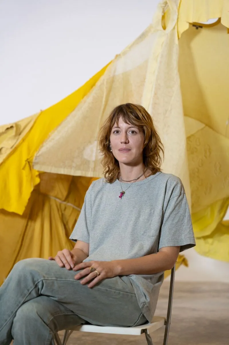 Hug es una artista interdisciplinar que trabaja con ropa de segunda mano y desechada para crear “esculturas vivientes”. Presentará una exposición de sus obras en La Paz, donde también ofrecerá un taller