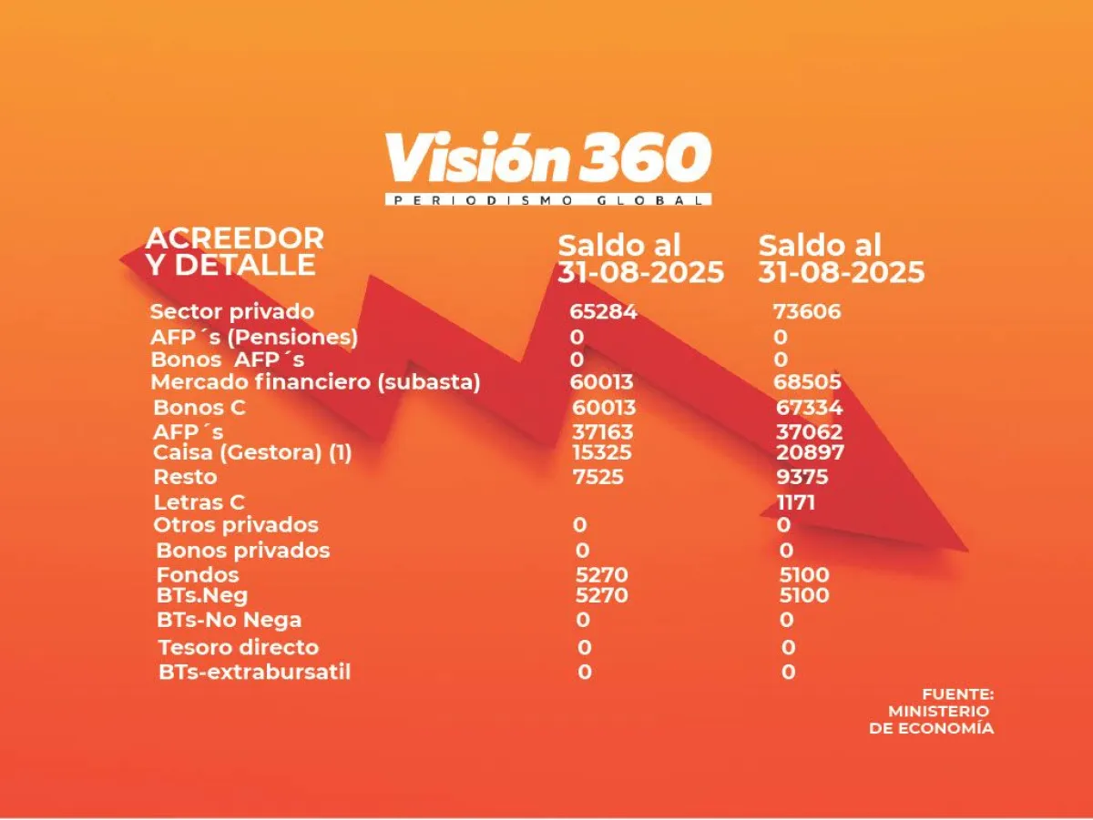 Datos del Ministerio de Economía revelan que el saldo de la deuda interna con el sector privado a diciembre de 2024 llegó a 65.284 millones de bolivianos, mientras que al 31 de agosto de este año, aumentó a 73.606 millones de bolivianos.