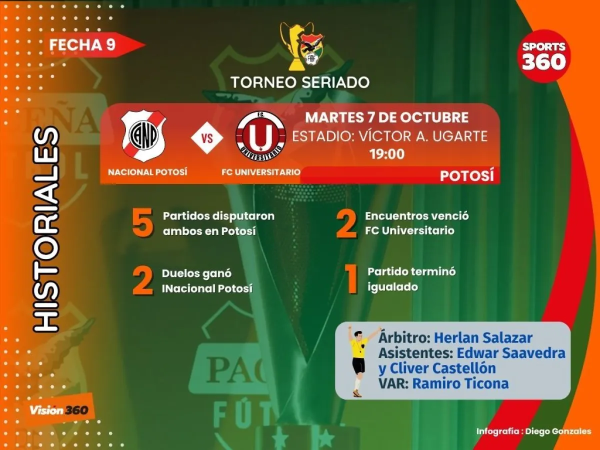 Nacional Potosí buscará volver al triunfo ante su gente este martes, desde las 19:00, cuando reciba a FC Universitario en el duelo que cierra la fecha nueve de la Copa de la División Profesional.