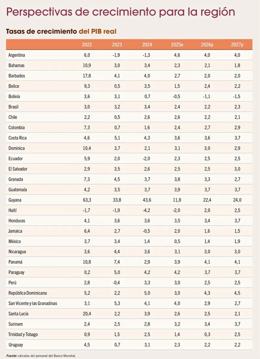 Se espera que la tasa de crecimiento regional aumente de forma ligera, de 2,2%, registrado en 2024, al 2,3% en 2025, pero con varias economías individuales enfrentando revisiones a la baja en sus proyecciones.