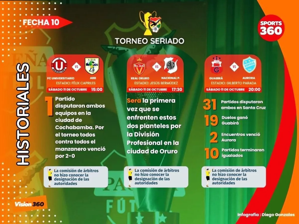 La jornada 10 del campeonato seriado comenzará a las 15:00 entre Universitario de Vinto y ABB. Los dos se encuentran en la cola de sus respectivas series.