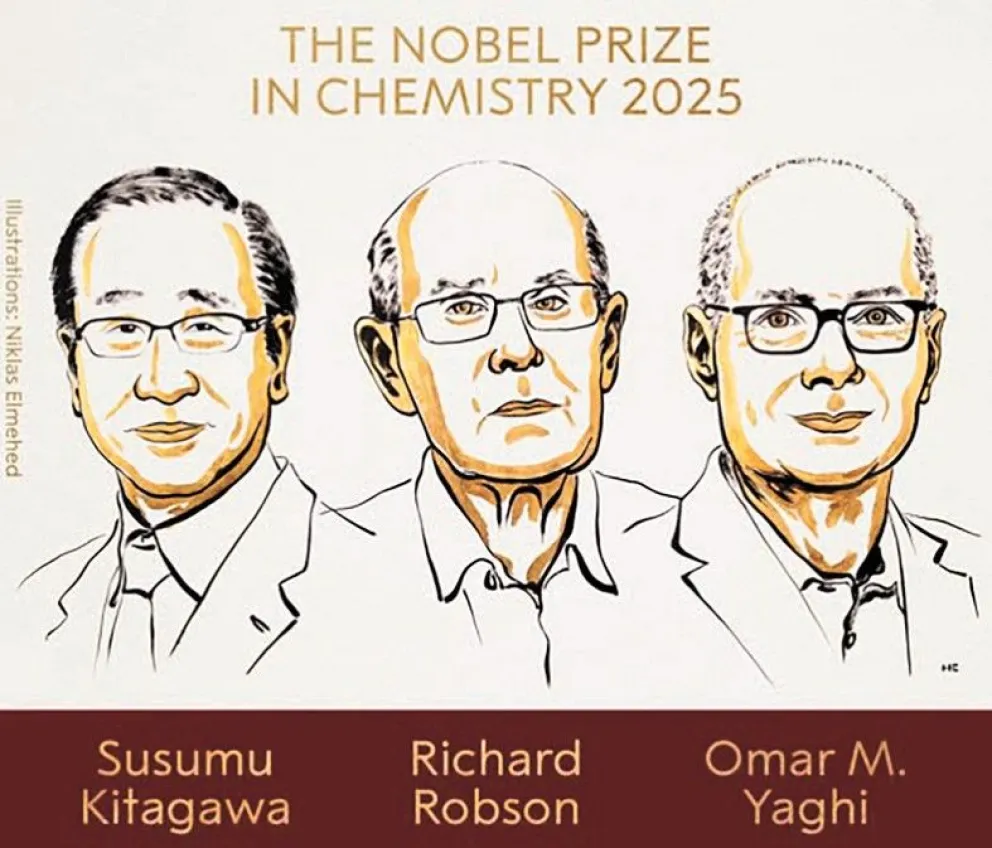 El Nobel de Química premió, el miércoles, al británico Richard Robson, el japonés Susumu Kitagawa y el jordano Omar M. Yaghi por el desarrollo de un nuevo tipo de arquitectura molecular, las estructuras metalorgánicas.