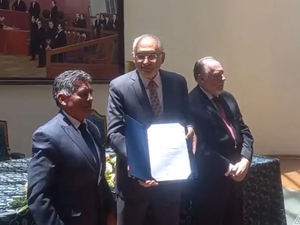 La declaración camaral resalta “el valioso aporte de Mesa en la prensa escrita, radial y televisiva, consolidándose como un referente en el periodismo boliviano”. El exmandatario recibió el galardón de manos del senador de su partido, Comunidad Ciudadana, Guillermo Seoane.