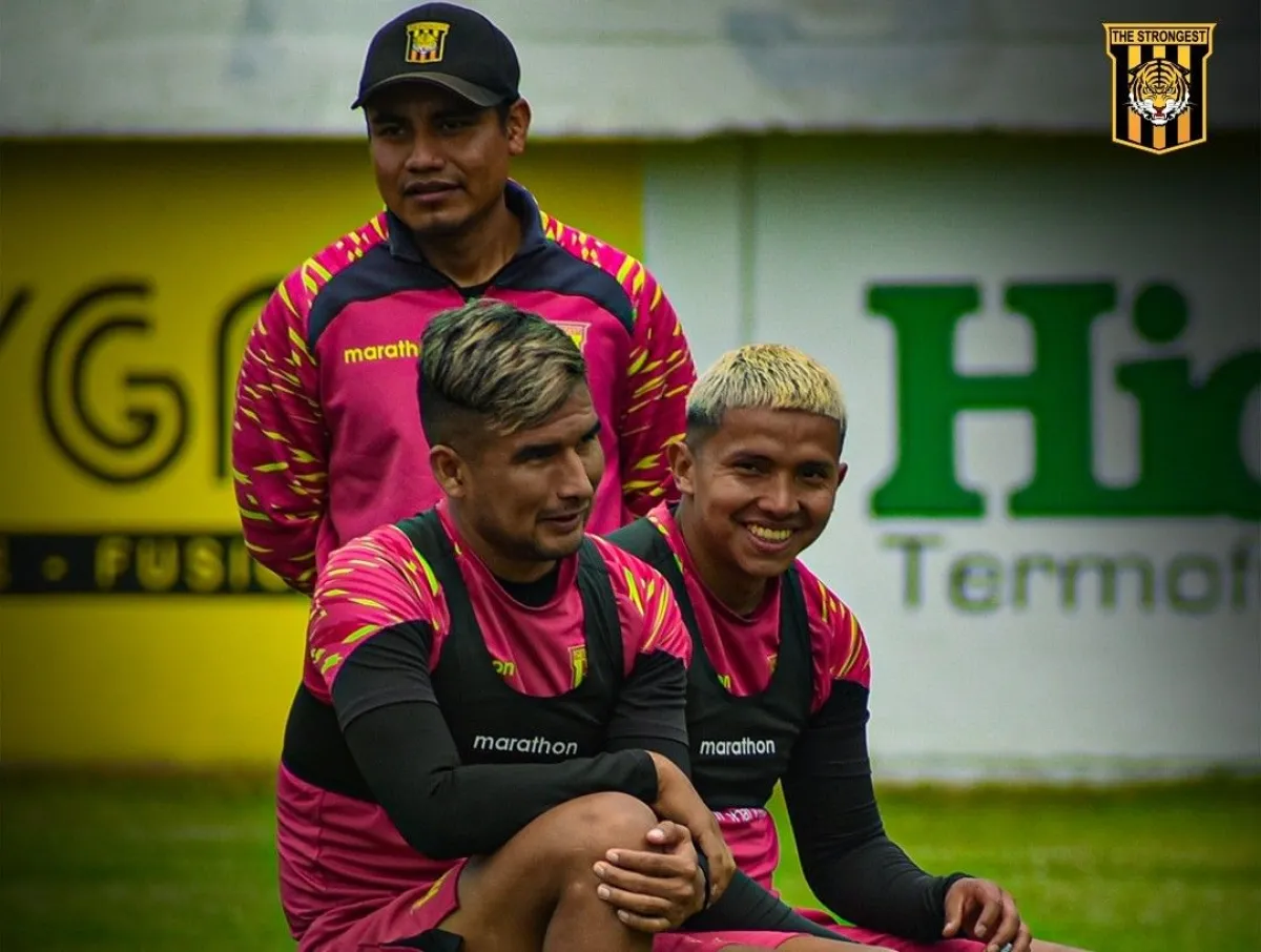 Álvaro Quiroga (izq.) y John García, además de un miembro del cuerpo técnico, en la práctica de este jueves. Foto: club The Strongest