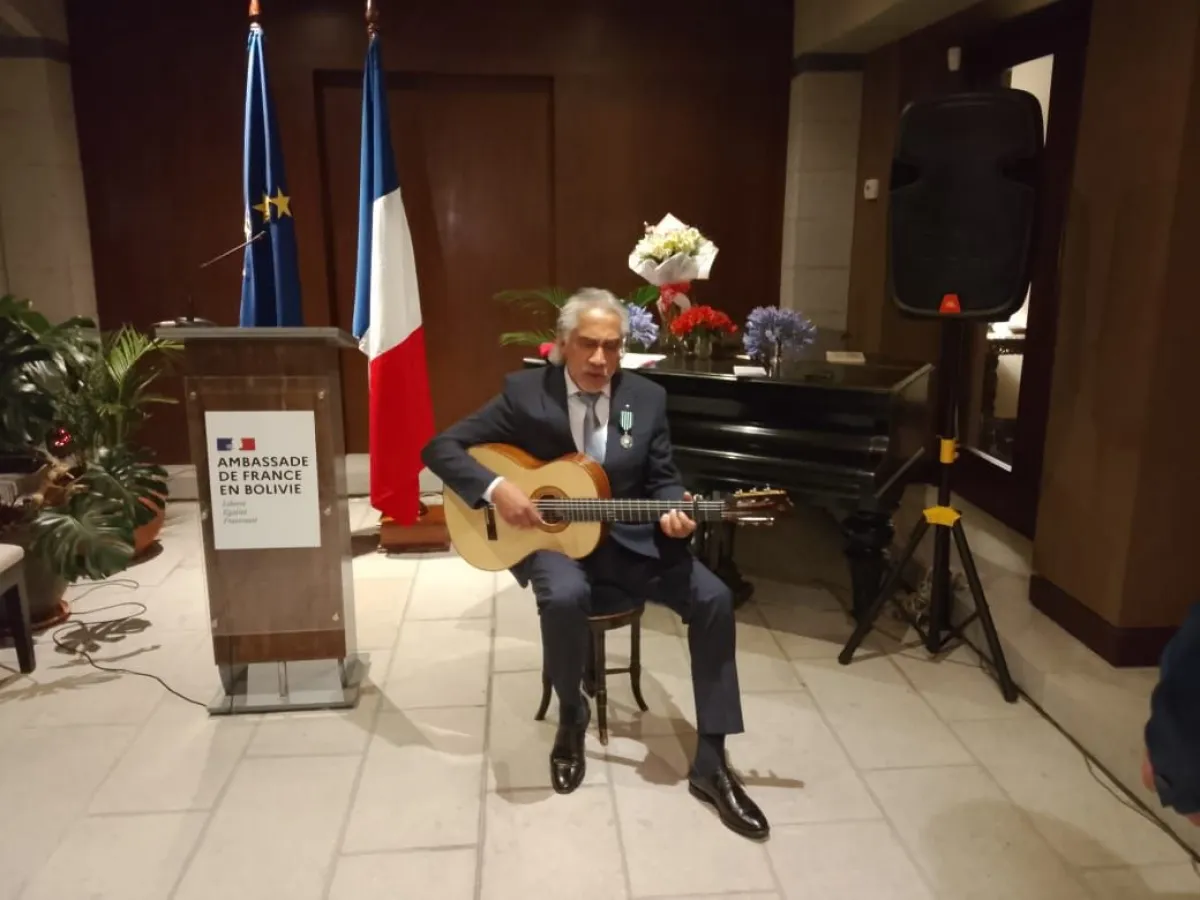 "Estoy muy agradecido. Recibo esta condecoración de parte del pueblo francés, del Estado francés, como un premio para mi país. Es un reconocimiento a mi trabajo, a mi compromiso con mi cultura, con mi país, con mi identidad boliviana, con las letras, con mi música", manifestó, por su parte, el cantautor tras el acto.