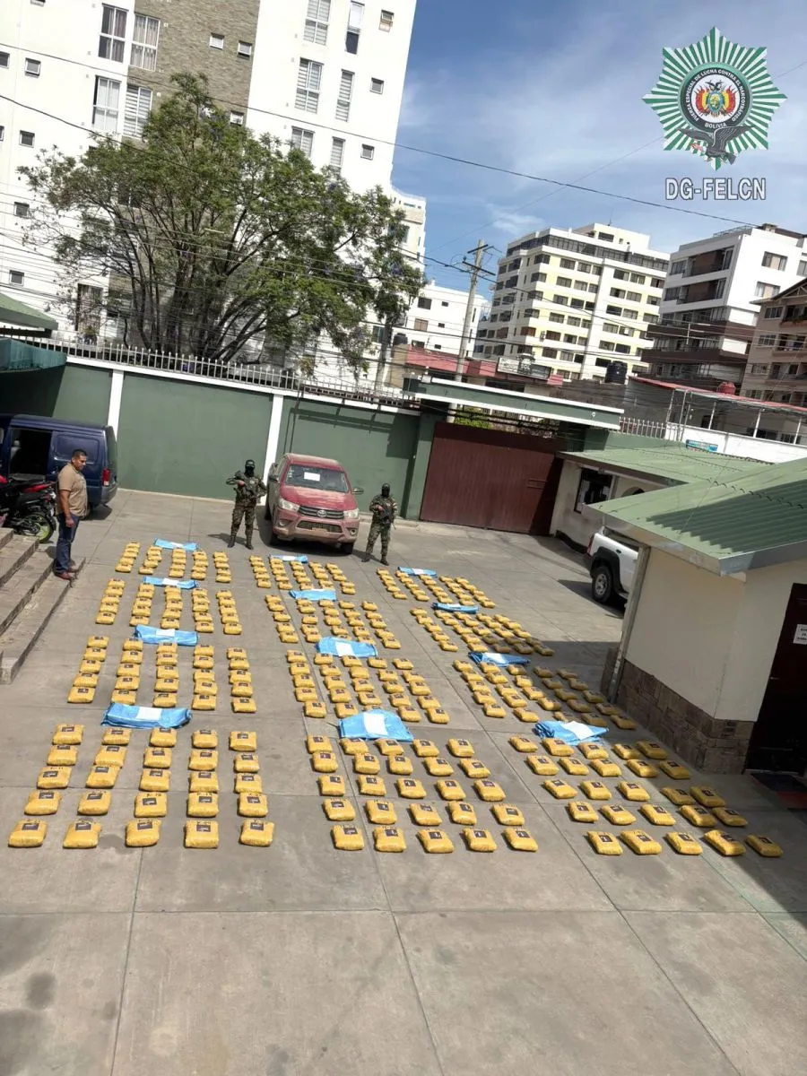Desde el 18 de octubre, según la Felcn, se incautaron en Cochabamba 393,4 kilos de clorhidrato de cocaína y pasta base de cocaína y 332,9 kilos de marihuana, con seis personas aprehendidas.