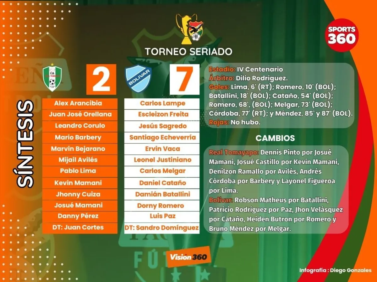 Gracias a esta victoria Bolívar escaló al segundo puesto del Grupo A con 14 puntos, mientras que el representativo tarijeño quedó último del B con 8 unidades.