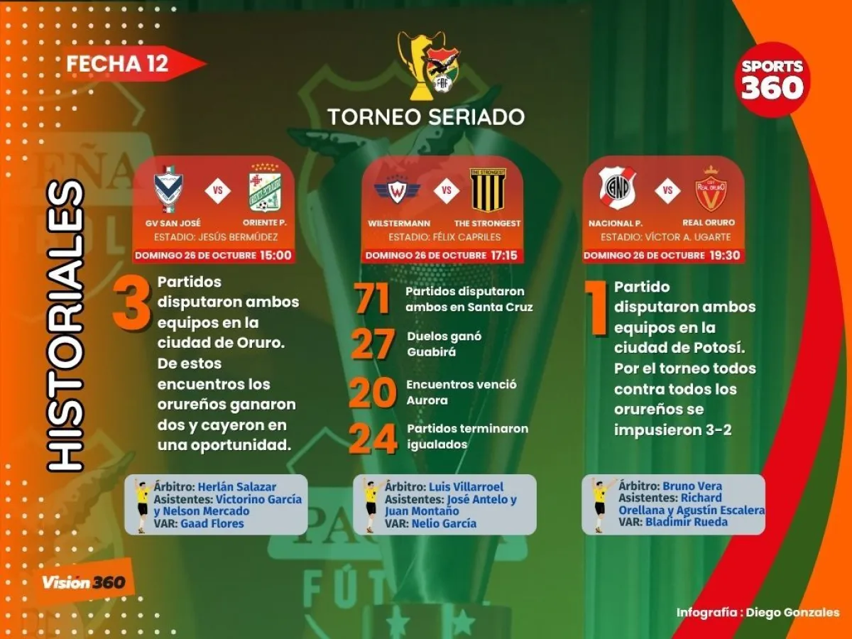 La fecha 12 del campoenato seriado continuará este domingo con dos partidos más. Todo comenzará a las 15:00 en el estadio Jesús Bermúdez con el choque entre GV San José y Oriente Petrolero.