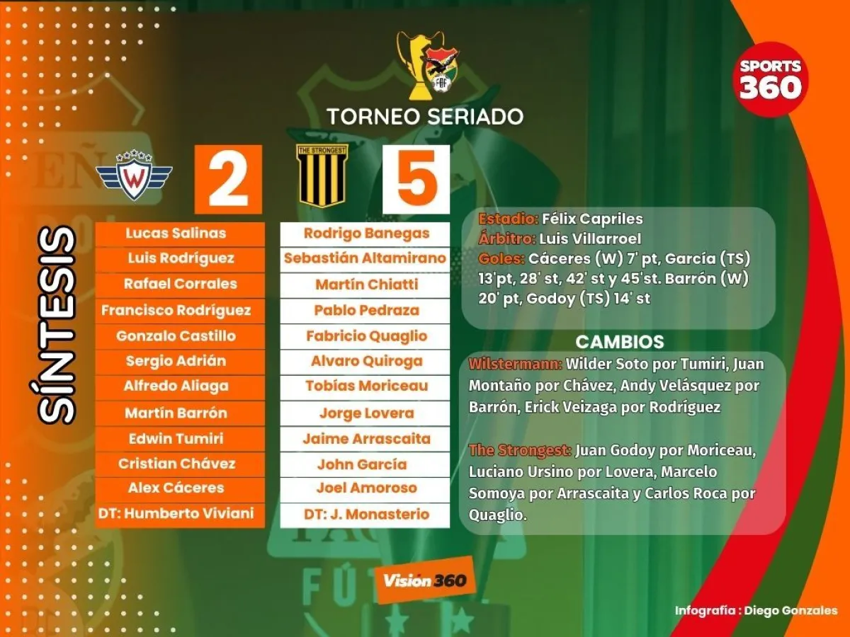The Strongest retomó la senda del triunfo al vencer por 5-2 a Wilstermann, en Cochabamba, en un atractivo partido que se disputó por la fecha 12 del campeonato seriado. John García fue la figura al marcare cuiatro conquistas a los rojos.