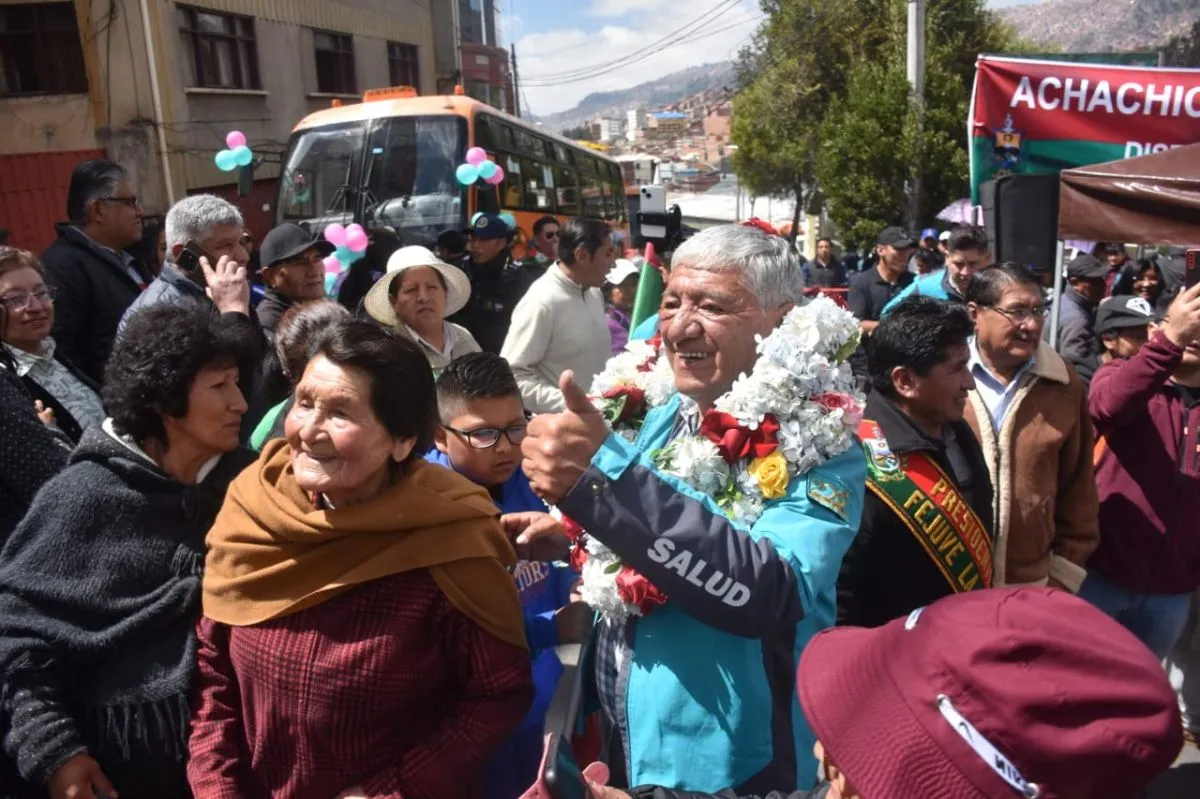 El alcalde Iván Arias, junto a autoridades municipales, dirigentes vecinales y transportistas, inauguraron este domingo una nueva ruta del Chikititi que unirá el centro paceño con Limanipata una conexión muy esperada por las familias de las laderas altas del macrodistrito Periférica y beneficiará a cerca de 150 mil personas.