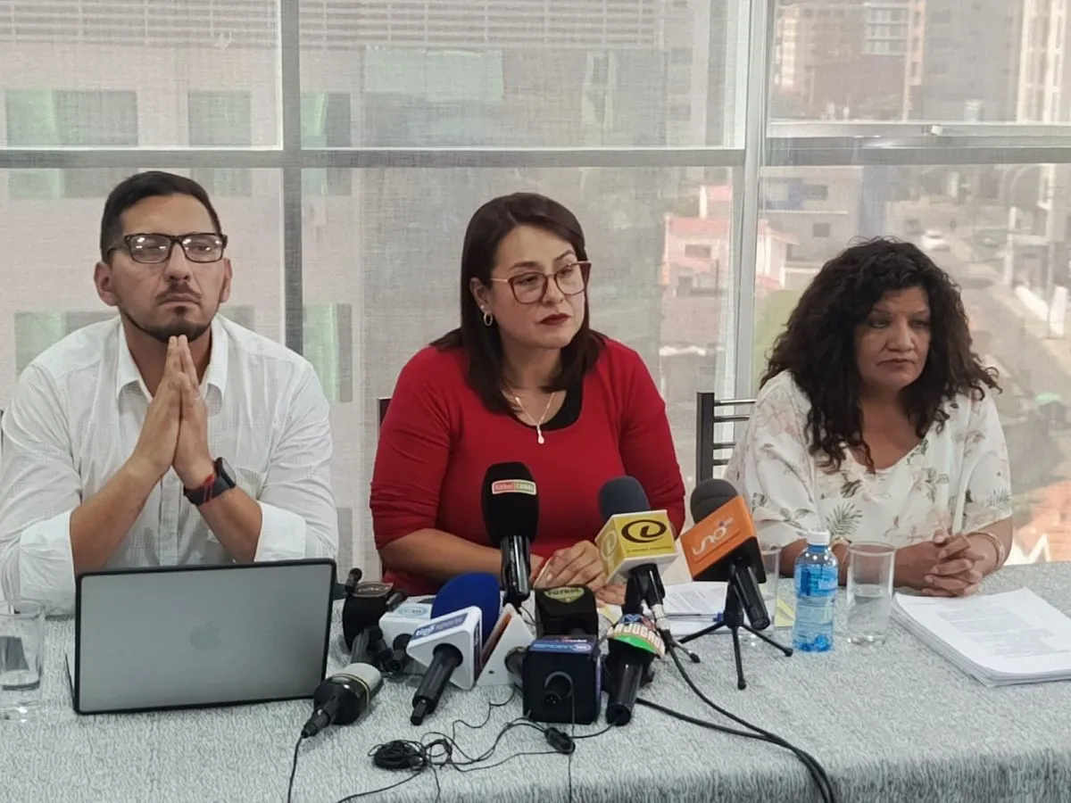 Ricardo Beltrán, Paola Mendoza y la abogada Miriam  Mendoza. Foto: Futbolacho/Ismael Mostajo