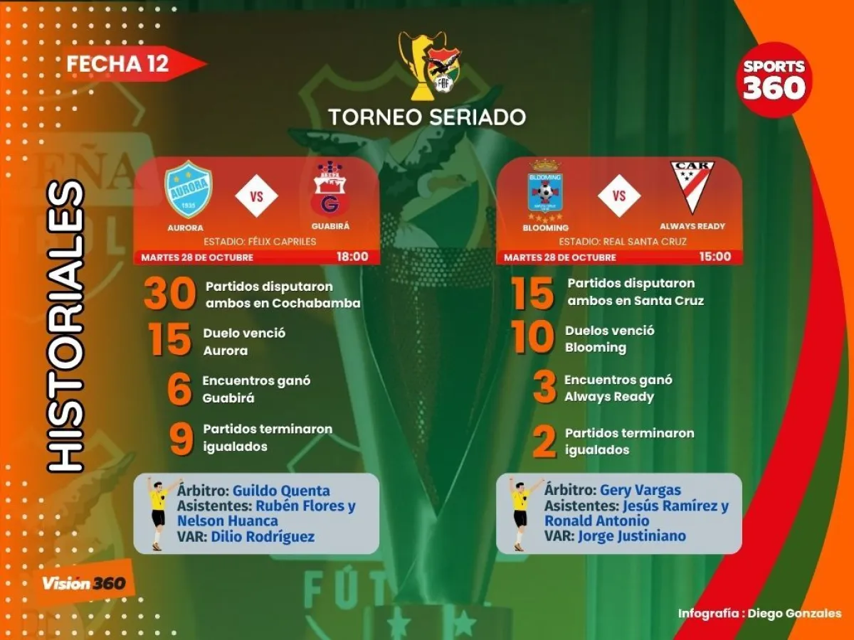 El otro encuentro de este martes lo jugarán los elencos de Aurora y Guabirá (18:00), en el estadio Félix Capriles. Los azucareros pueden clasificar a cuartos si ganan su compromiso.