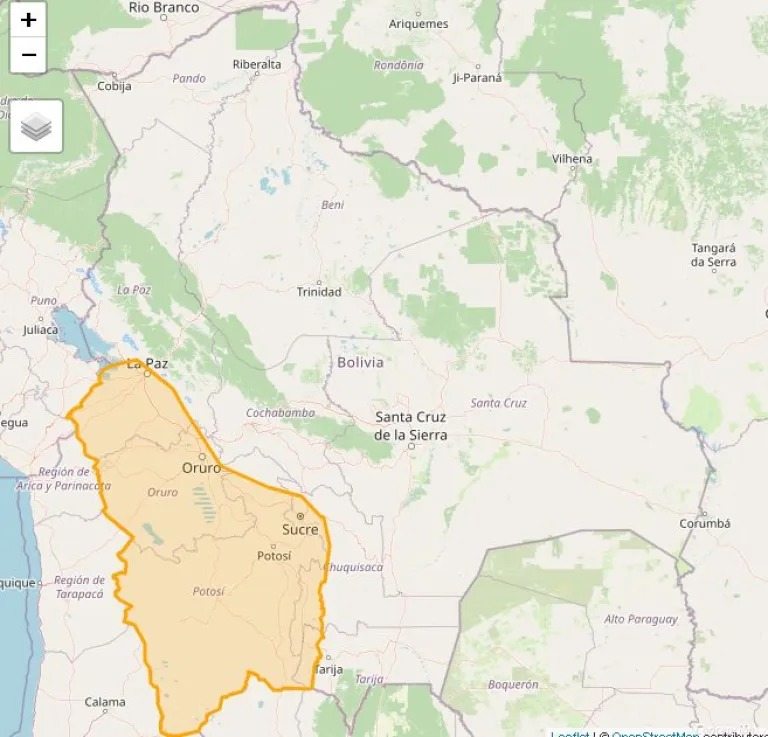 Se prevén ráfagas de entre 30 y 50 kilómetros por hora en las provincias de Ingavi, J.M. Pando, Pacajes, Villarroel, Aroma, Omasuyos, Murillo, Los Andes, Manco Kapac, Loayza y el sur de Inquisivi, en La Paz; Oropeza, Yamparáez, noroeste de Nor Cinti y Sud Cinti, en Chuquisaca; y el oeste de Eustaquio Méndez y José María Avilés, en Tarija.