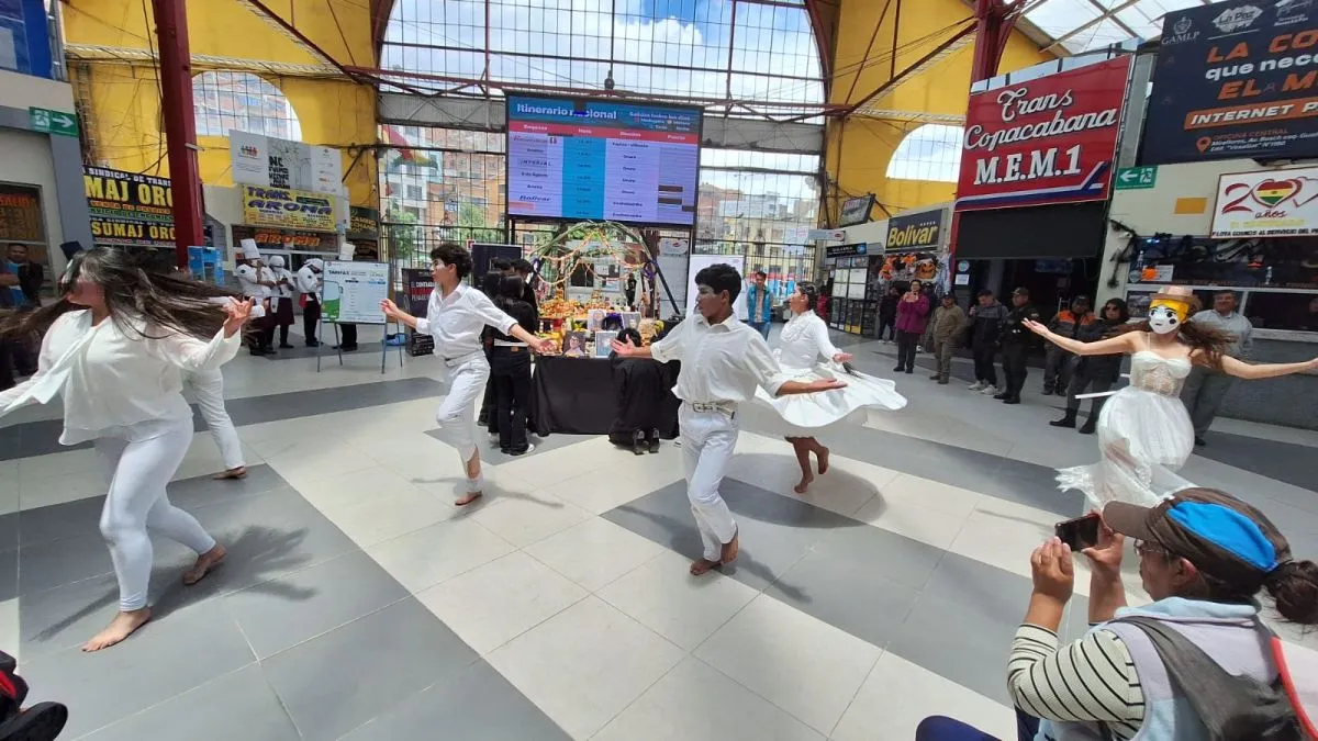 Con música, danza y teatro se recibieron a las almas en la Terminal de buses de La Paz