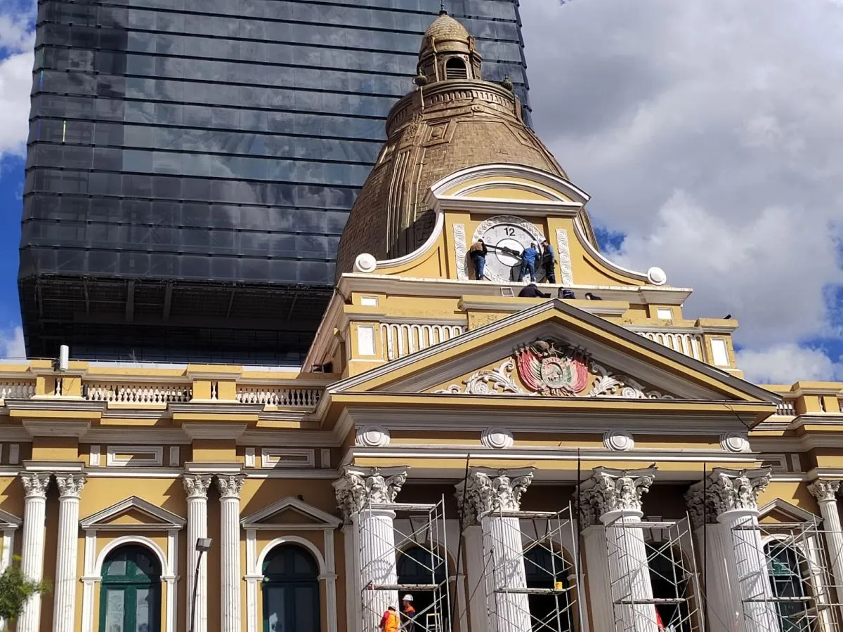 A dos días de la posesión del nuevo Gobierno, las alcaldías de El Alto y La Paz trabajan en refaccionar ambas urbes para recibir a las autoridades y a los invitados internacionales. Una de estas labores es restaurar el reloj del Palacio Legislativo, cuyas manecillas giraban en sentido contrario al habitual desde que fue modificado hace 11 años por el ahora vicepresidente saliente, David Choquehuanca.