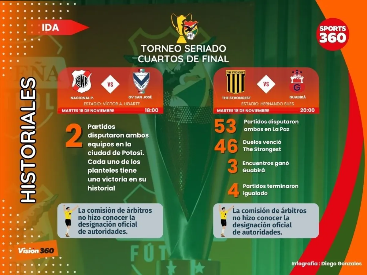 Los cuartos de final arrancarán a las 18:00 en la Villa Imperial con el juego entre Nacional  Potosí y GV San José