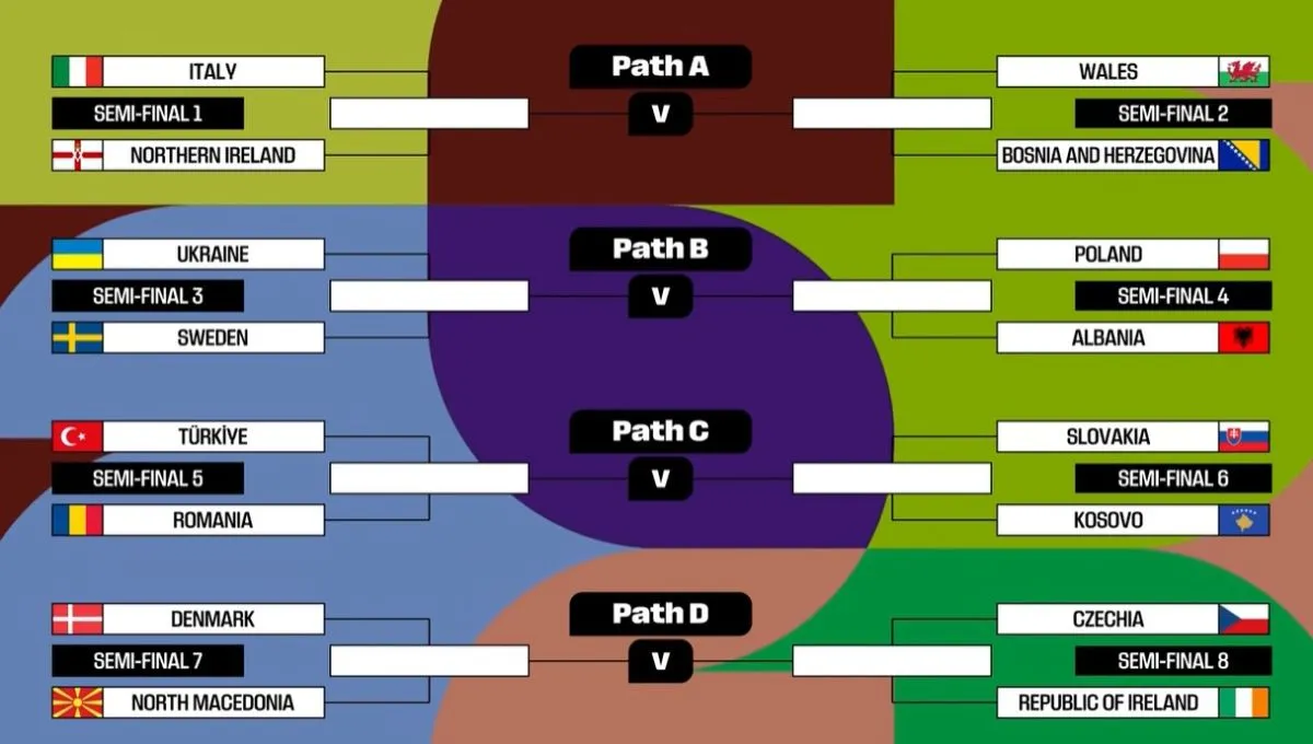Italia-Irlanda del Norte, Polonia-Albania y Turquía-Rumanía son los emparejamientos más destacados de la primera eliminatoria a partido único de la repesca europea para obtener los cuatro billetes para el Mundial de 2026.