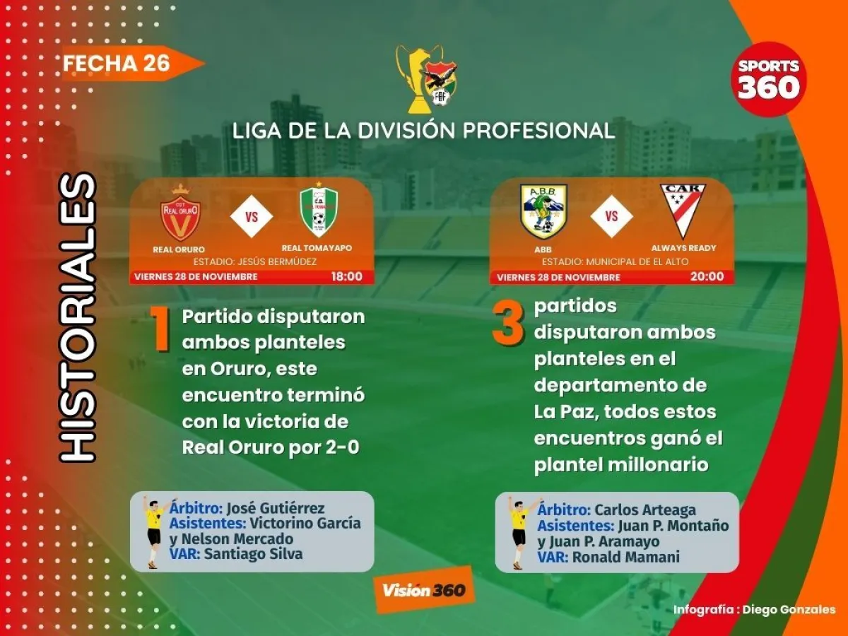 La fecha 26 se inicia este viernes con el partido entre Totora Real Oruro y Real Tomayapo, que se jugará desde las 18.00 en el estadio Jesús Bermúdez.
