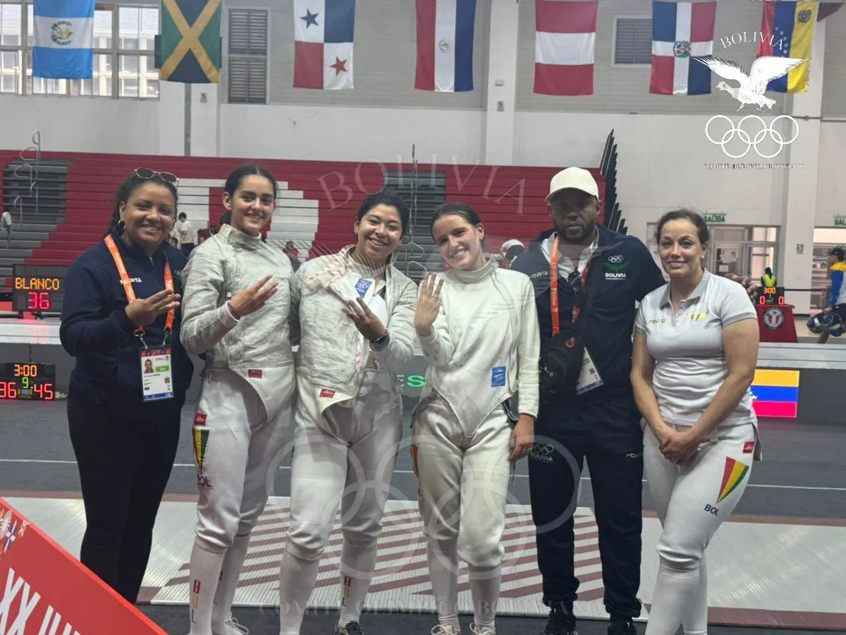 Briana Iriarte, Flavia Quiroga y Camila Torrico le dieron el otro bronce al país en la competencia por equipos femenino de sable en esgrima que se disputó en el Polideportivo 01.