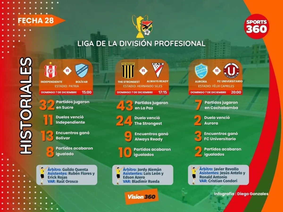 La jornada de este domingo arranca a las 15:00 con el encuentro entre Independiente y Bolívar, en el estadio Patria.