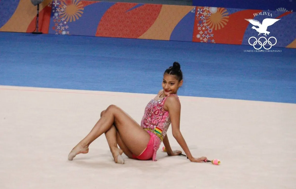 Mayte Guzmán en una de sus pruebas de la gimnasia rítmica. Foto: COB.
