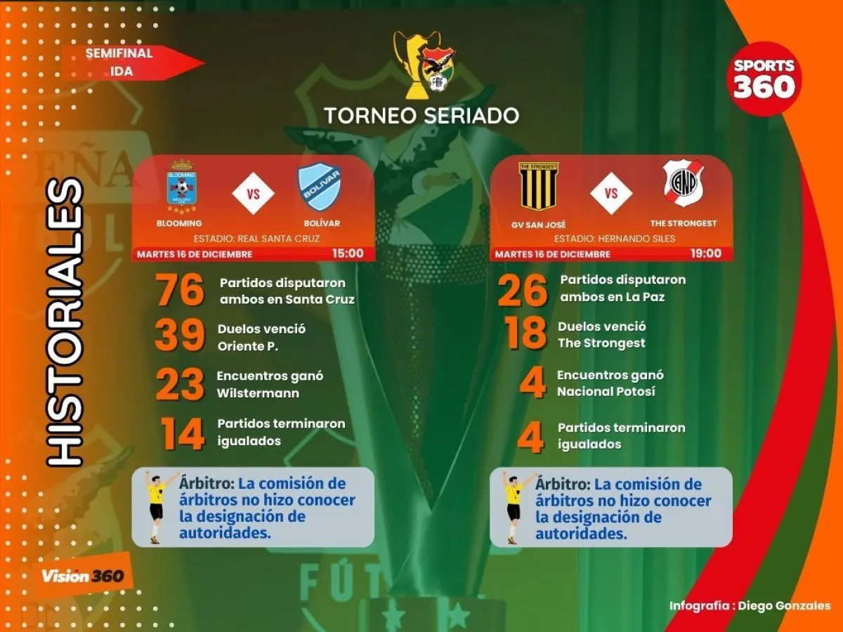 Las “semis” arrancarán a las 15.00 con el choque entre Blooming y Bolívar en el estadio de Real Santa Cruz; mientras que desde las 19.00 en el Hernando Siles de La Paz, The Strongest recibirá a Nacional Potosí.