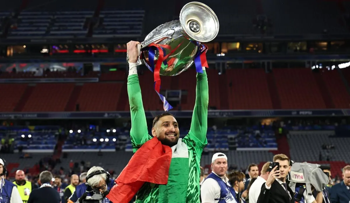 El italiano Gianluigi Donnarumma, actual portero del Manchester City, festeja la Champions que ganó con el PSG. Foto: EFE