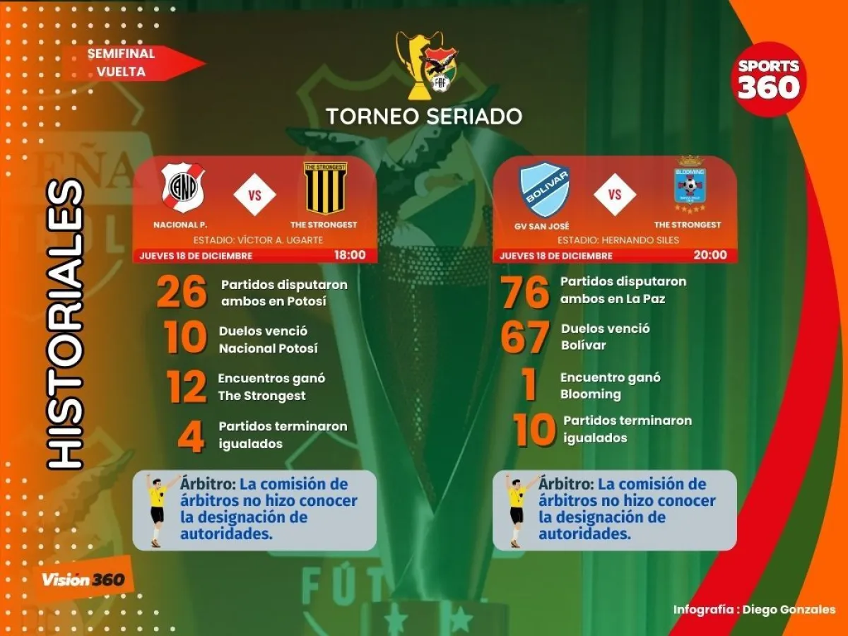 Los finalistas de la Copa de la División Profesional se conocerán este jueves en los partidos de vuelta de las semifinales. Nacional Potosí recibe a The Strongest desde las 18.00 en el estadio Victor Agustín Ugarte de la Villa Imperial y desde las 20.00, en el estadio Fernando Siles de La Paz, Bolívar será local de Blooming.