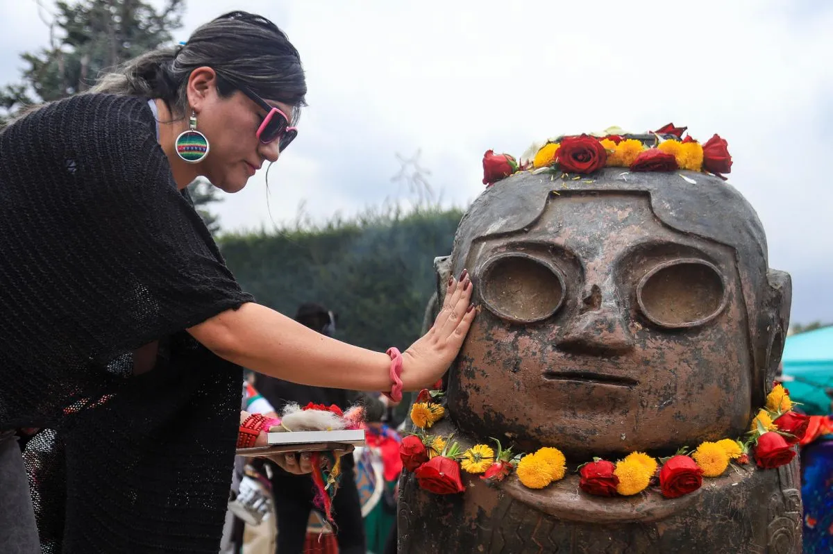 Un grupo de amautas (guías espirituales) realizaron rituales ancestrales durante una ceremonia este domingo, con esculturas simbólicas.