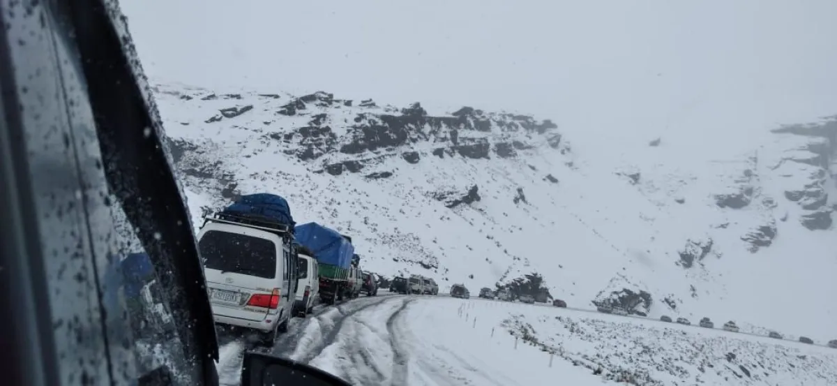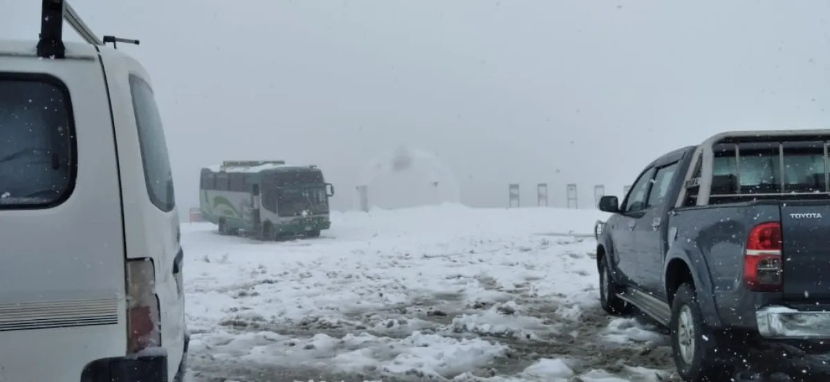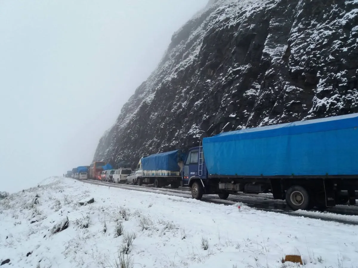Una intensa nevada cayó este viernes en el sector La Cumbre, en la carretera hacia Los Yungas, provocando que los vehículos se quedaran varados en la vía, mientras otros sufrieron percances y encunetamientos.
