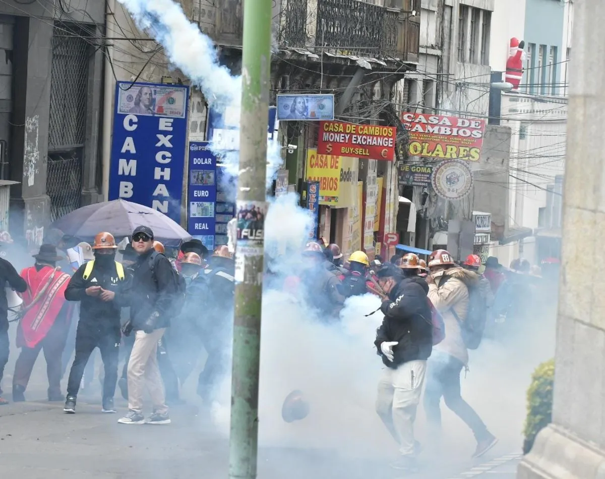 El pasado 23 de diciembre, en el segundo día de movilizaciones, la marcha de protesta de la COB, que pretendía ingresar a la plaza Murillo, fue contenida con gases lacrimógenos, en medio de enfrentamientos que terminaron con dos personas detenidas y al menos cuatro efectivos policiales heridos.